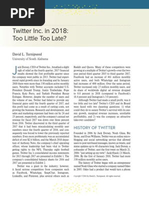 Twitter Inc In 2018 Too Little Too Late David L Turnipseed Pdf Netflix Snapchat